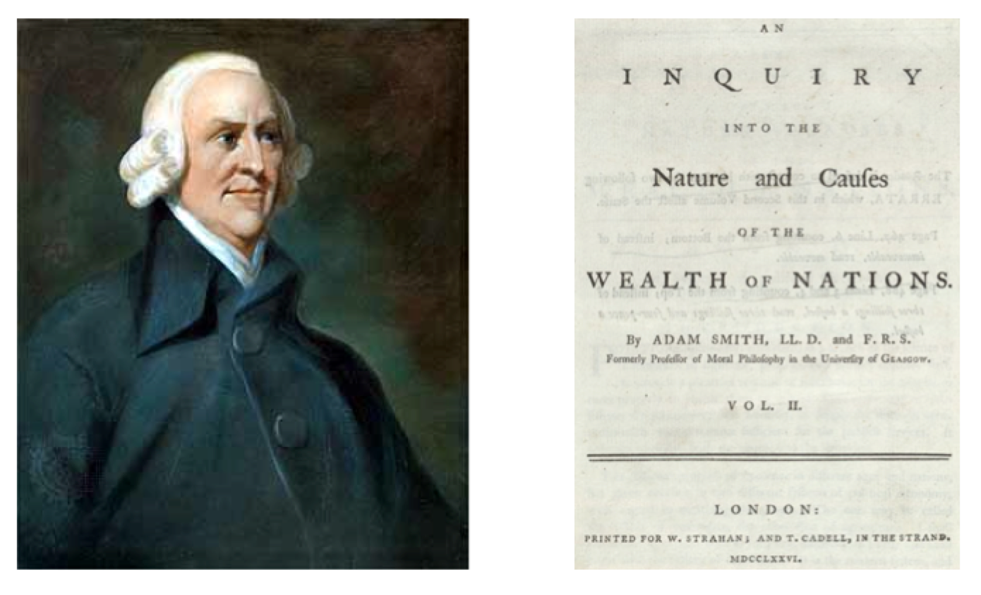 Economist Adam Smith's Wealth of Nations established the free market ideology that still influences many aspects of modern commercial and political thought. The Invisible Hand of the market proposes that the sum of individual actions in self-interest lead to a collective outcome that is more effective than that resulting from deliberate intention.